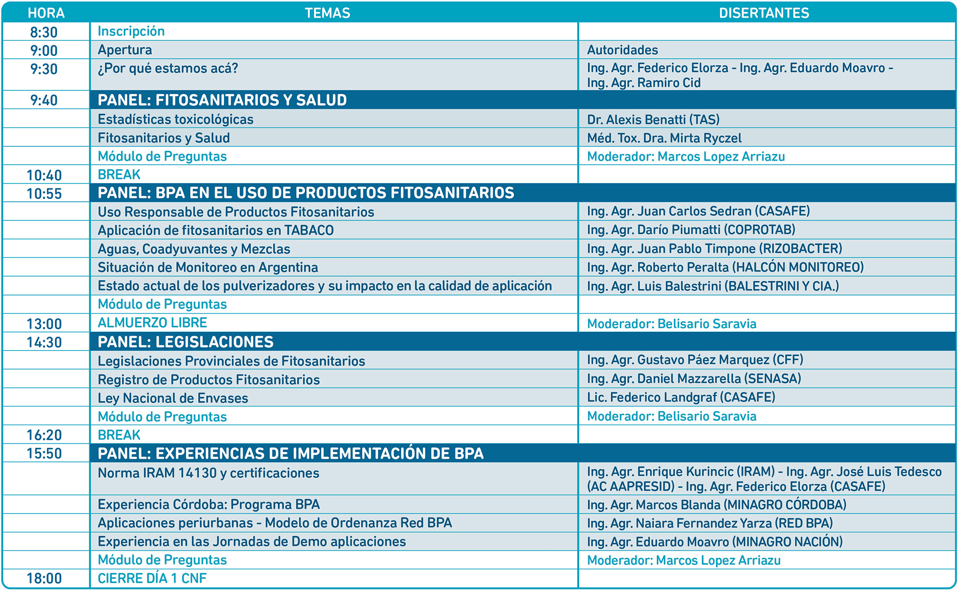 Cronograma Dia 1 Congreso Nacional de Fitosanitarios